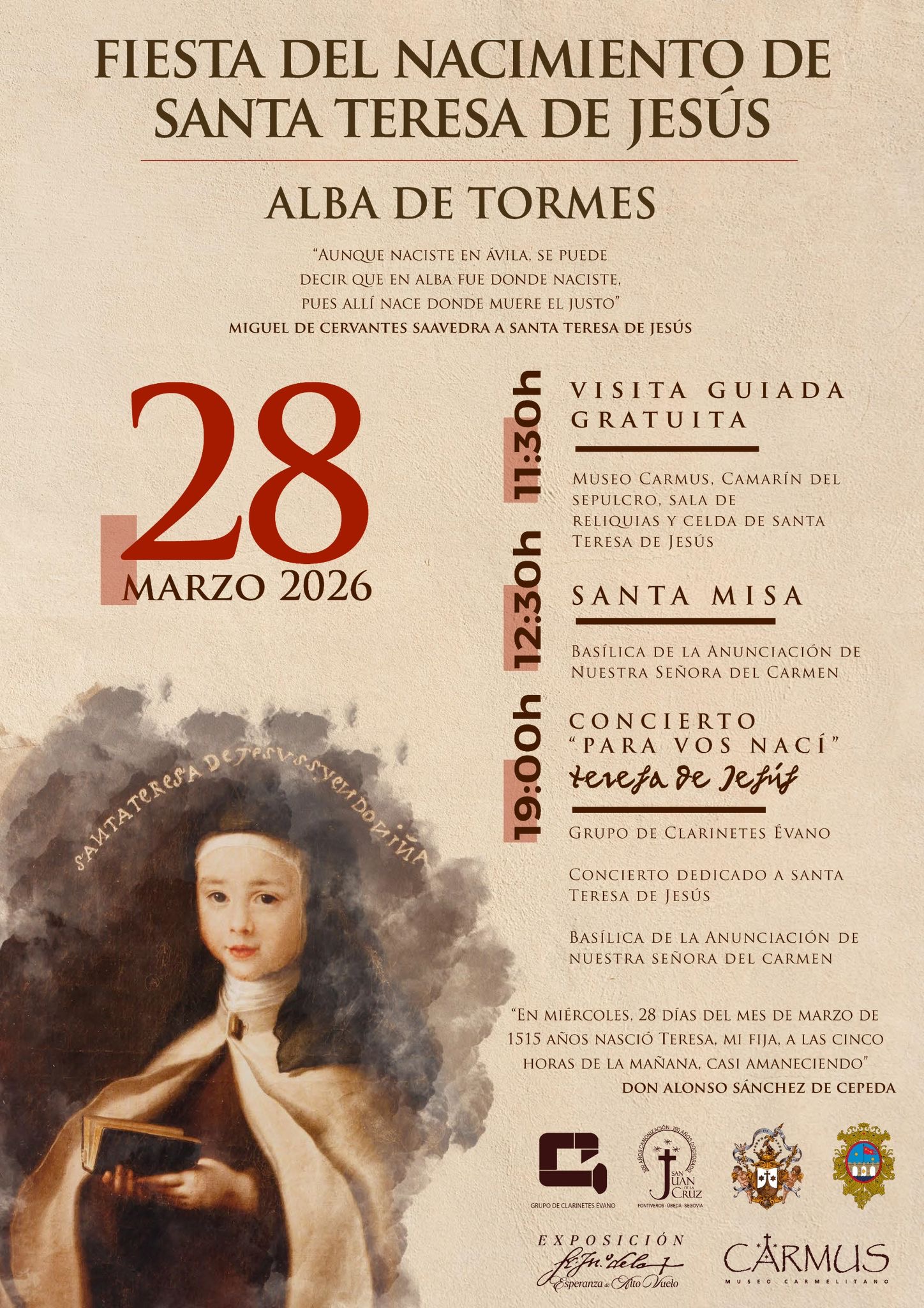 La jornada comenzará a las 11:30 horas con una visita guiada gratuita, dirigida tanto a vecinos como a peregrinos y visitantes. La actividad estará conducida por el carmelita descalzo Miguel Ángel González, director del Museo Carmus, y permitirá recorrer algunos de los espacios más significativos del legado teresiano: el propio museo, el camarín del sepulcro, la sala de reliquias y la celda de la santa.