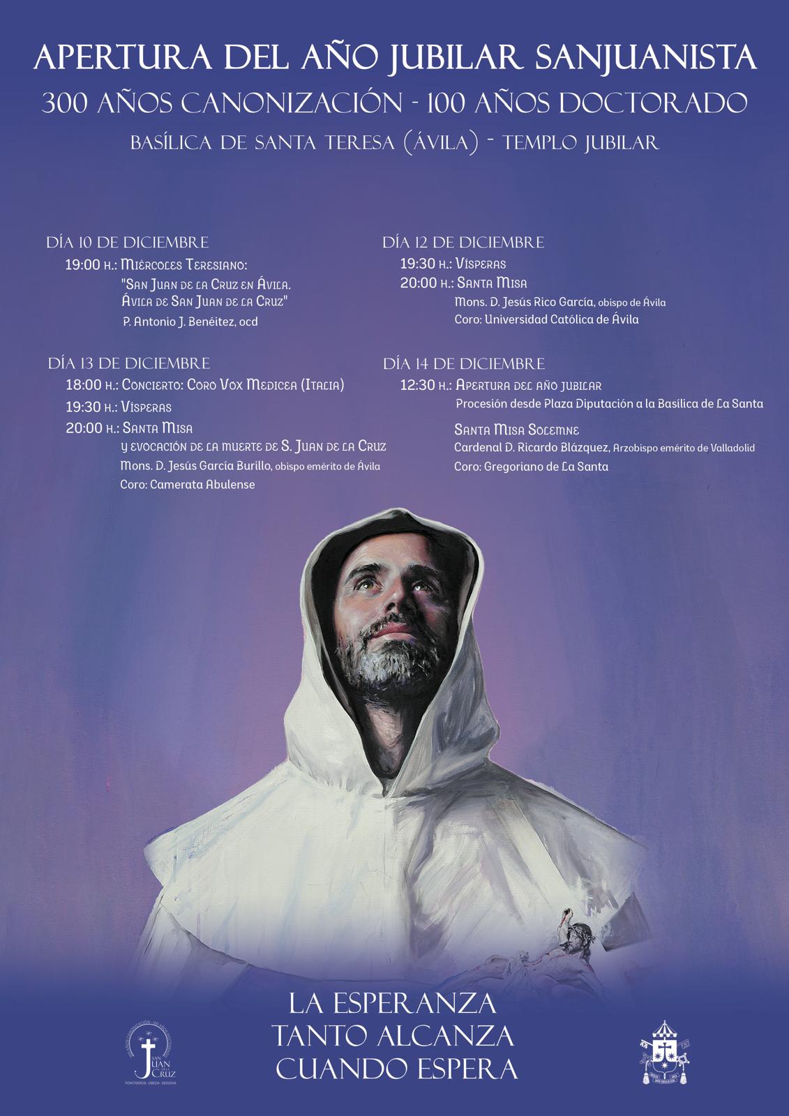 La comunidad de Ávila ha dado a conocer el programa de celebraciones con el que se inaugurará el Año Jubilar Sanjuanista, con motivo del III Centenario de la canonización y el I Centenario del doctorado de San Juan de la Cruz. La Basílica de Santa Teresa ha sido designada Templo Jubilar, lugar donde se desarrollarán los principales actos entre los días 10 y 14 de diciembre.