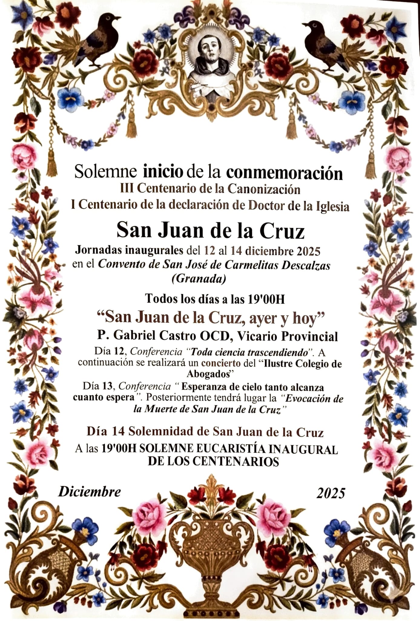 Con este programa, la comunidad granadina se suma al conjunto de iniciativas que, en toda la Provincia Ibérica y en diferentes lugares del mundo, honrarán a San Juan de la Cruz en este año especialmente significativo, invitando a profundizar en su mensaje de esperanza, amor y encuentro con Dios.