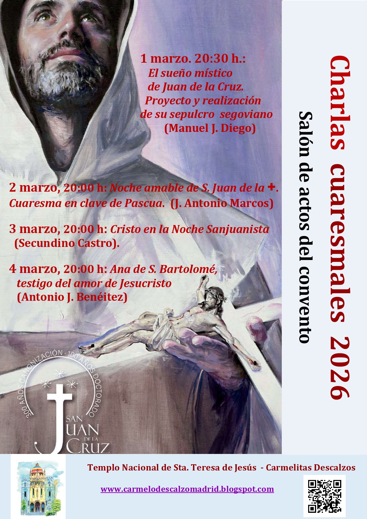 El Templo Nacional de Santa Teresa de Jesús – Carmelitas Descalzos (Plaza de España, Madrid) acogerá del 1 al 4 de marzo un ciclo de Charlas Cuaresmales 2026, una propuesta formativa y espiritual que invita a vivir la Cuaresma en clave sanjuanista y pascual.