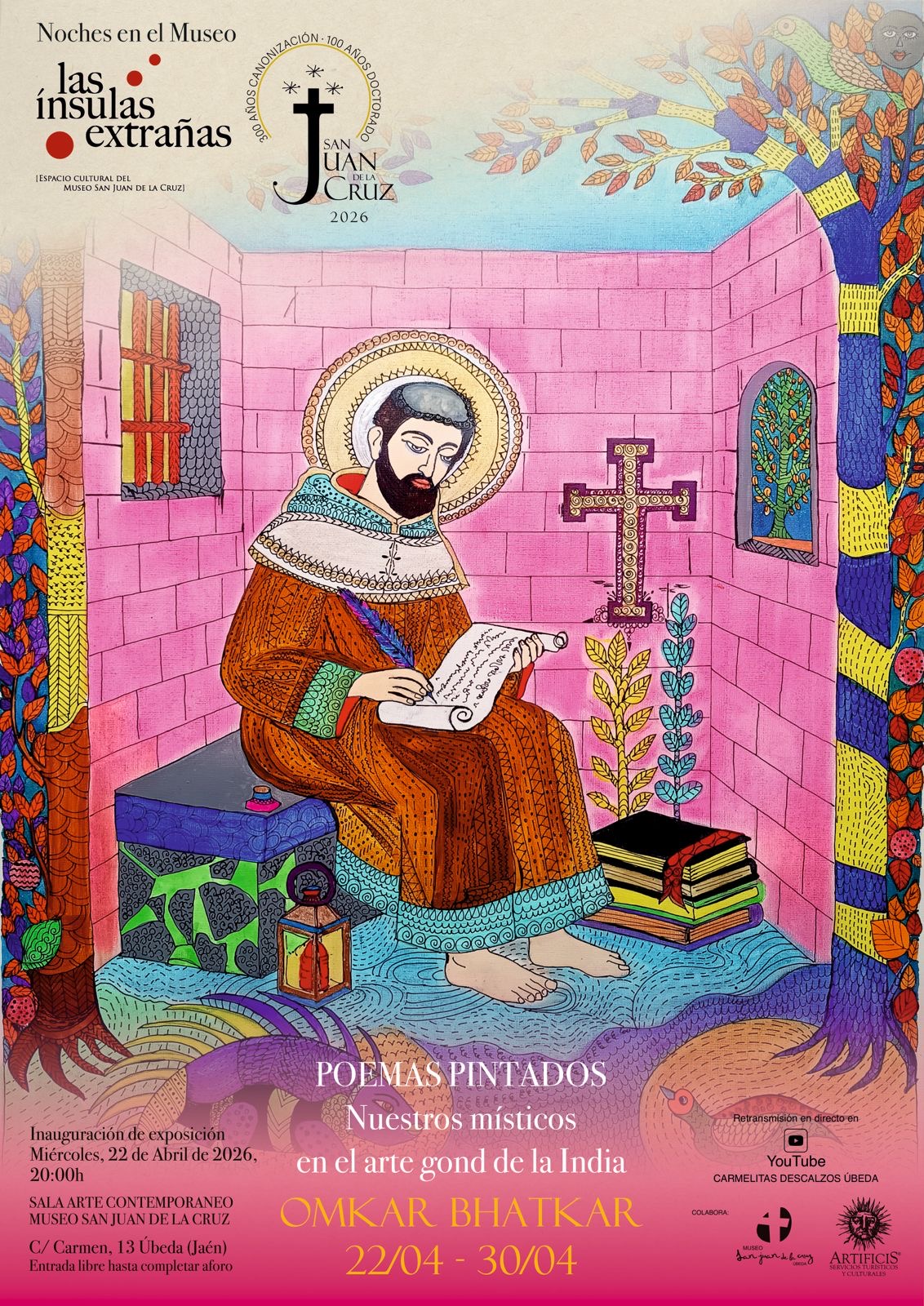 El Convento de San Juan de la Cruz de los Carmelitas Descalzos de Úbeda acogió en la noche del 22 de abril la inauguración de la exposición “Poemas pintados. Los místicos españoles a través del arte got de la India”, en el marco del espacio cultural de las Ínsulas Extrañas.