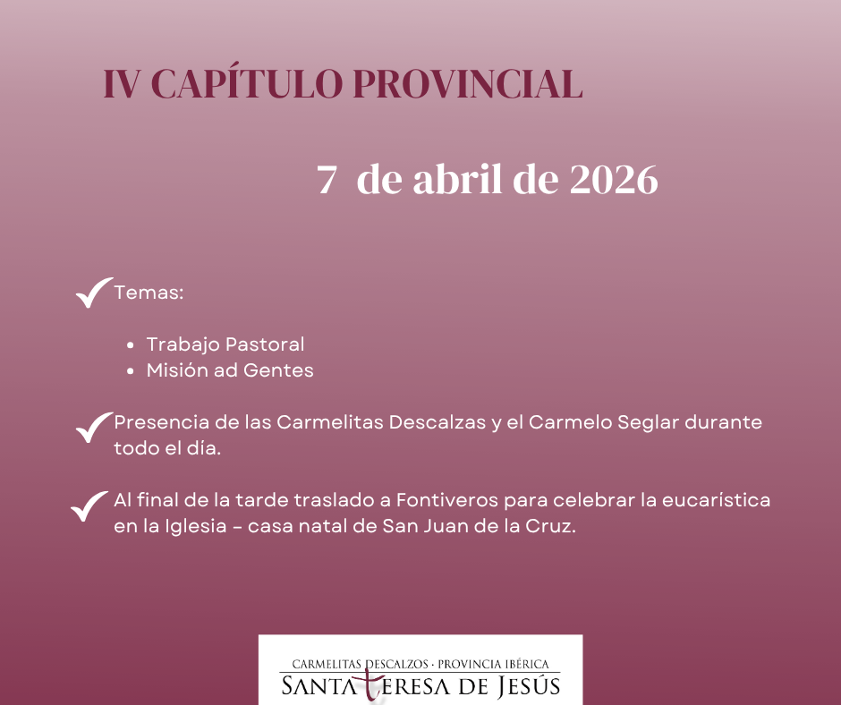 A lo largo del día, el Capítulo contará con la participación de las Carmelitas Descalzas y del Carmelo Seglar, poniendo de relieve la riqueza de la familia carmelitana y la importancia de la misión compartida. Este encuentro favorecerá el diálogo, la escucha mutua y la búsqueda conjunta de nuevos caminos para la acción pastoral.