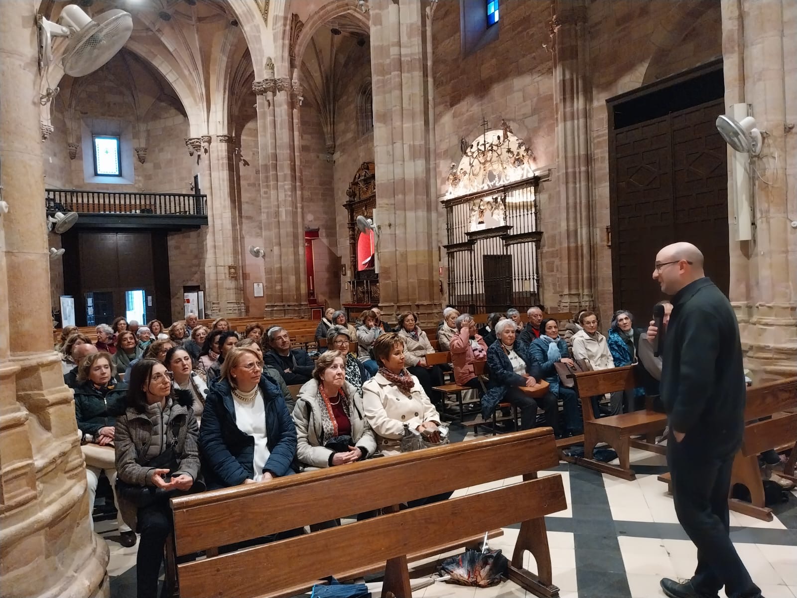 La visita estuvo enriquecida por las explicaciones del párroco de Santa María la Mayor, D. Carlos Moreno Galliano, amigo de la comunidad carmelita, quien ofreció una presentación detallada sobre el códice y su vínculo con el Santo.