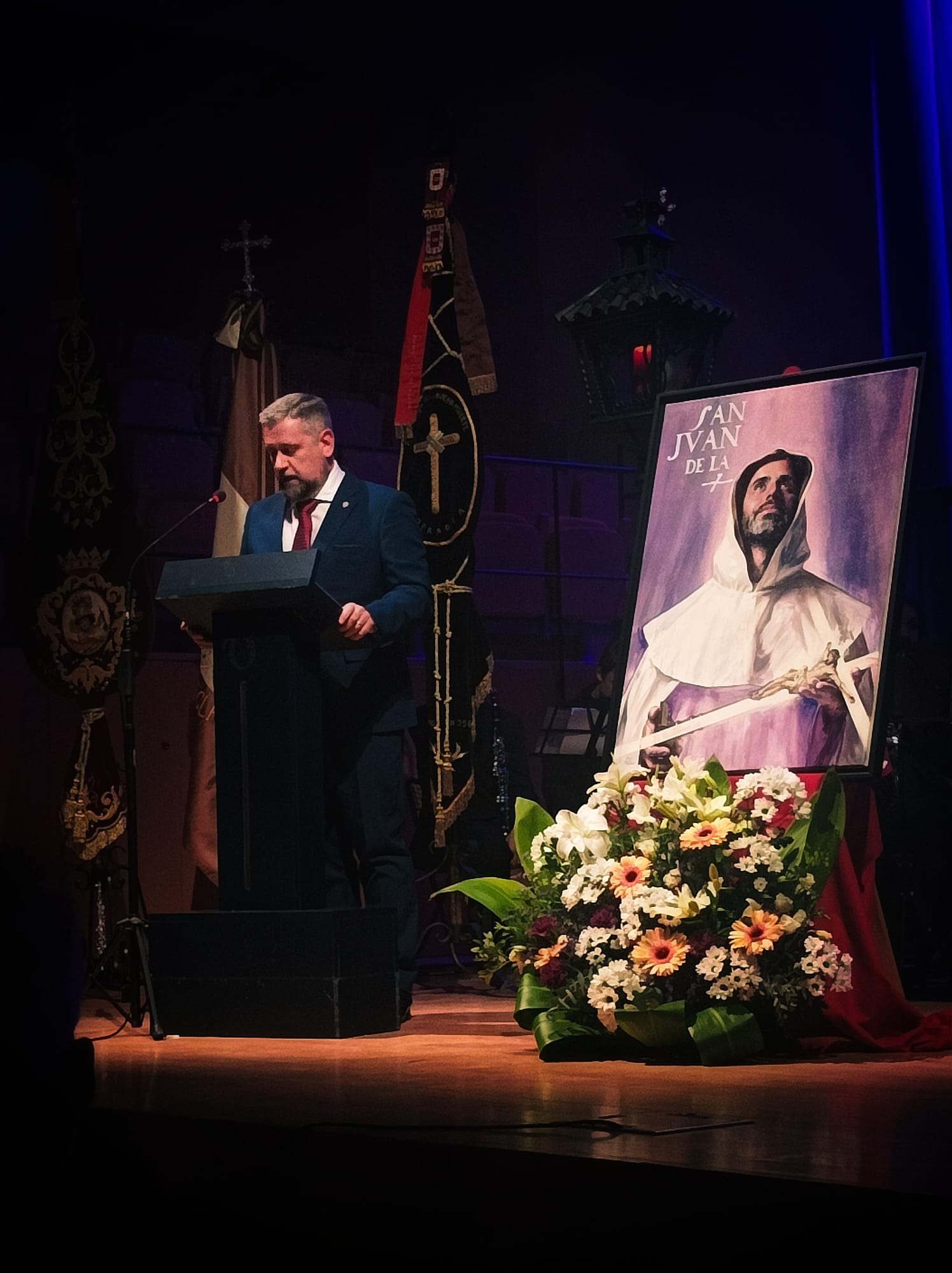 La víspera de la festividad de San Juan de la Cruz se vivió con emoción en Úbeda. El auditorio del Hospital de Santiago acogió anoche el Pregón de Vísperas, un acto profundamente poético, religioso y cultural que reunió a cerca de trescientas personas en torno a la figura del santo carmelita.