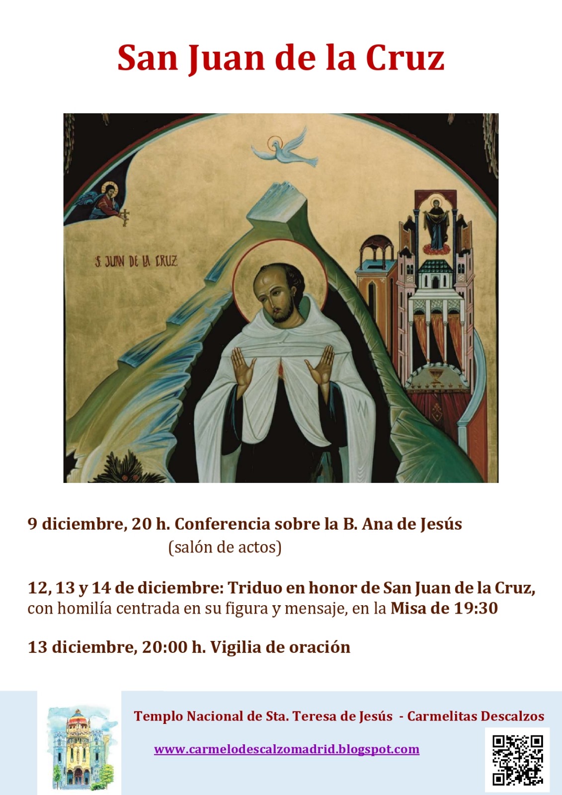 D’altra banda, els dies 12, 13 i 14 de desembre es farà un tridu en honor del sant. L’homilia estarà centrada en la seva figura i missatge. Les eucaristies seran a les 19:30 hores en el Temple Nacional de Santa Teresa de Jesús.