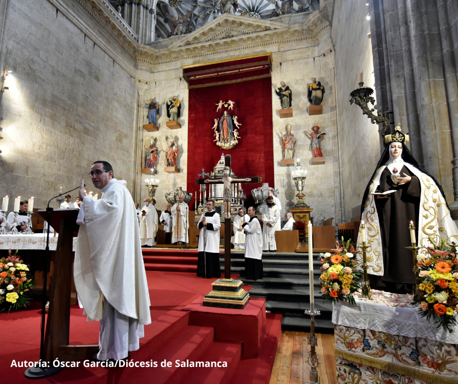 El passat diumenge, 8 d’octubre, es va clausurar l’Any Jubilar Teresià a la diòcesi de Salamanca. El bisbe de la ciutat, Mons. José Luis Retana, va presidir a la SIB Catedral l’eucaristia de clausura. Amb ell, van concelebrar el prepòsit general de l’Orde, P. Miguel Márquez Calle, i el superior provincial de la Província Ibèrica, P. Francisco Sánchez Oreja.