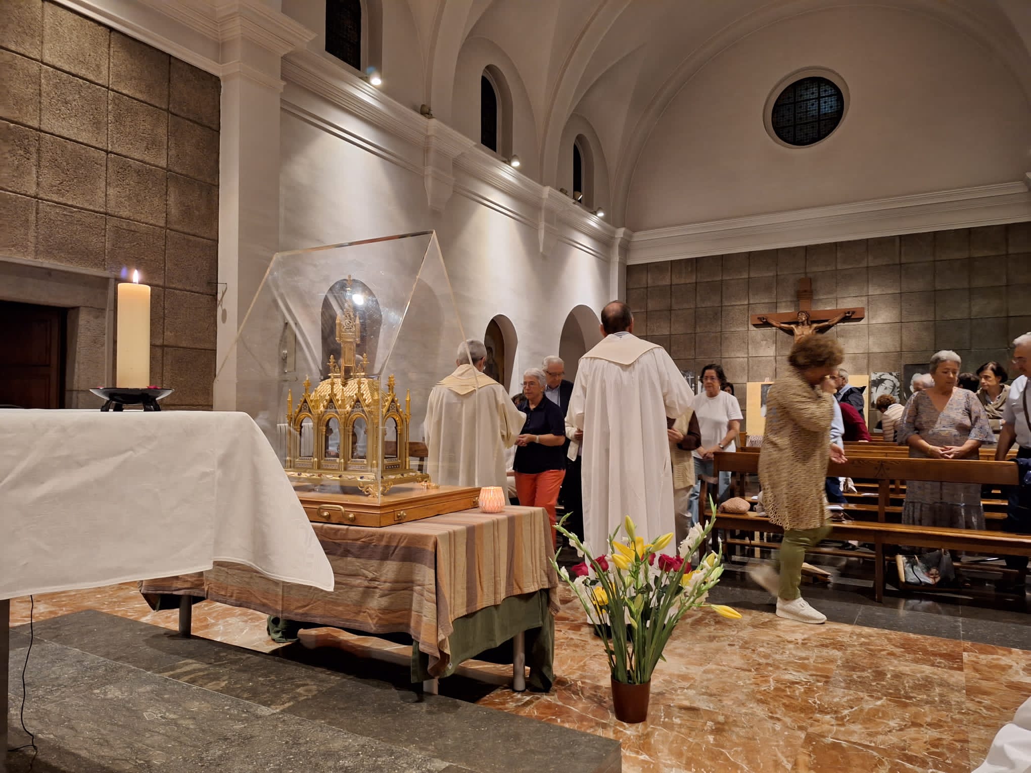 Amb les relíquies en el santuari s’han celebrat tres eucaristies: una a les 9,30 hores presidida pel P. Alfonso Díaz Zurdo, una altra a les 12,30 hores del migdia, presidida pel senyor bisbe, Mons. Salvador Giménez, i l’última al capvespre presidida pel P. Joan Badia. En totes elles van participar-hi els tres religiosos de la comunitat.