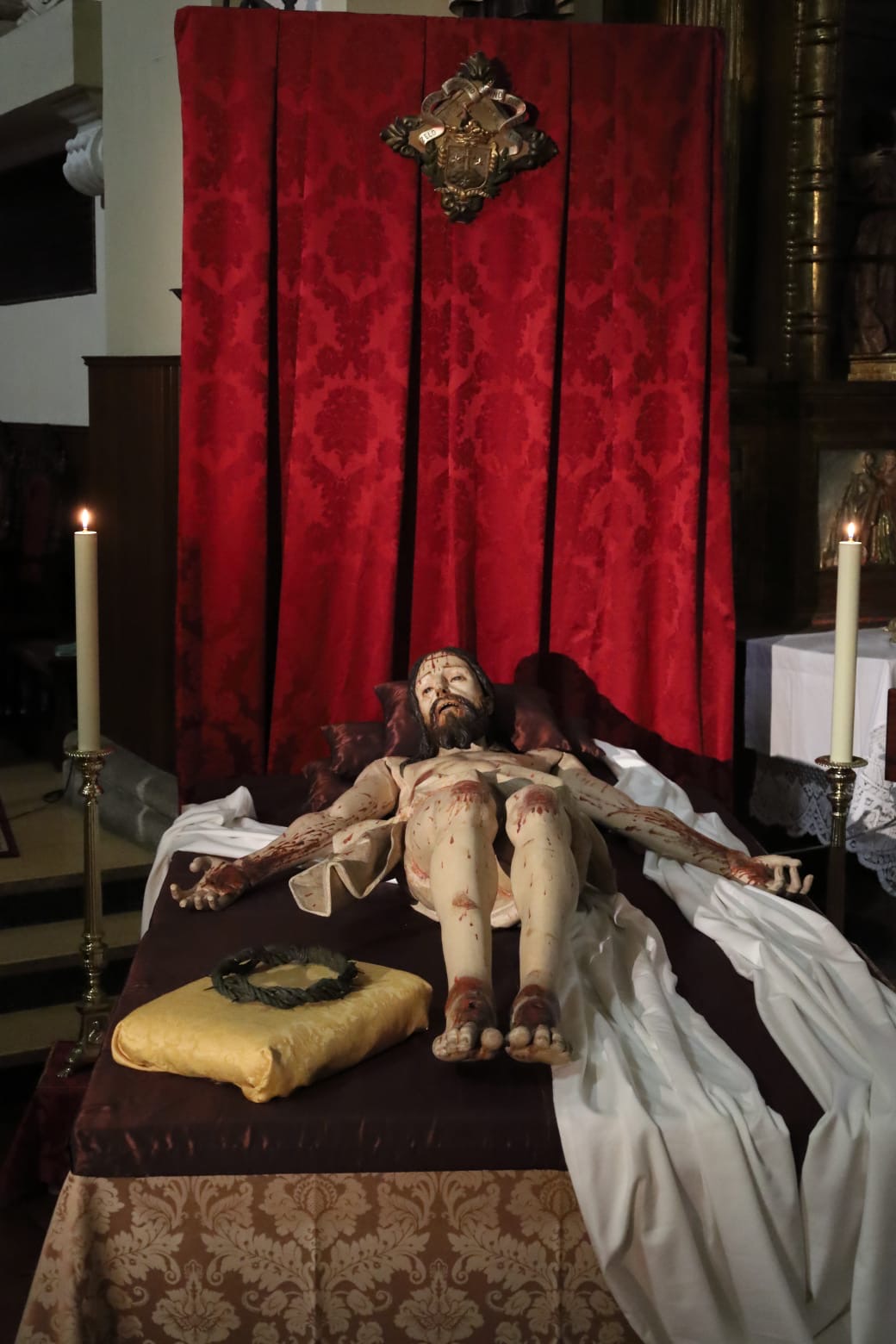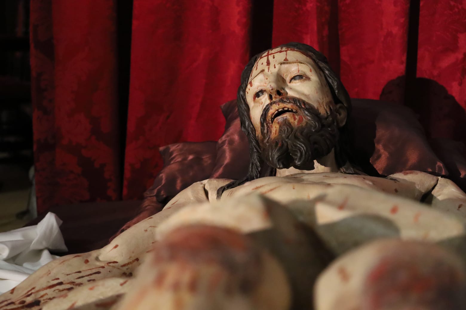 La imatge, col·locada sobre un llit mortuori amb un fons de domàs vermell, podrà contemplar-se en el temple carmelita durant els pròxims dies, permetent a fidels i visitants apreciar de prop els resultats d’una restauració que retorna a Medina del Campo una de les seves joies patrimonials més valuoses.