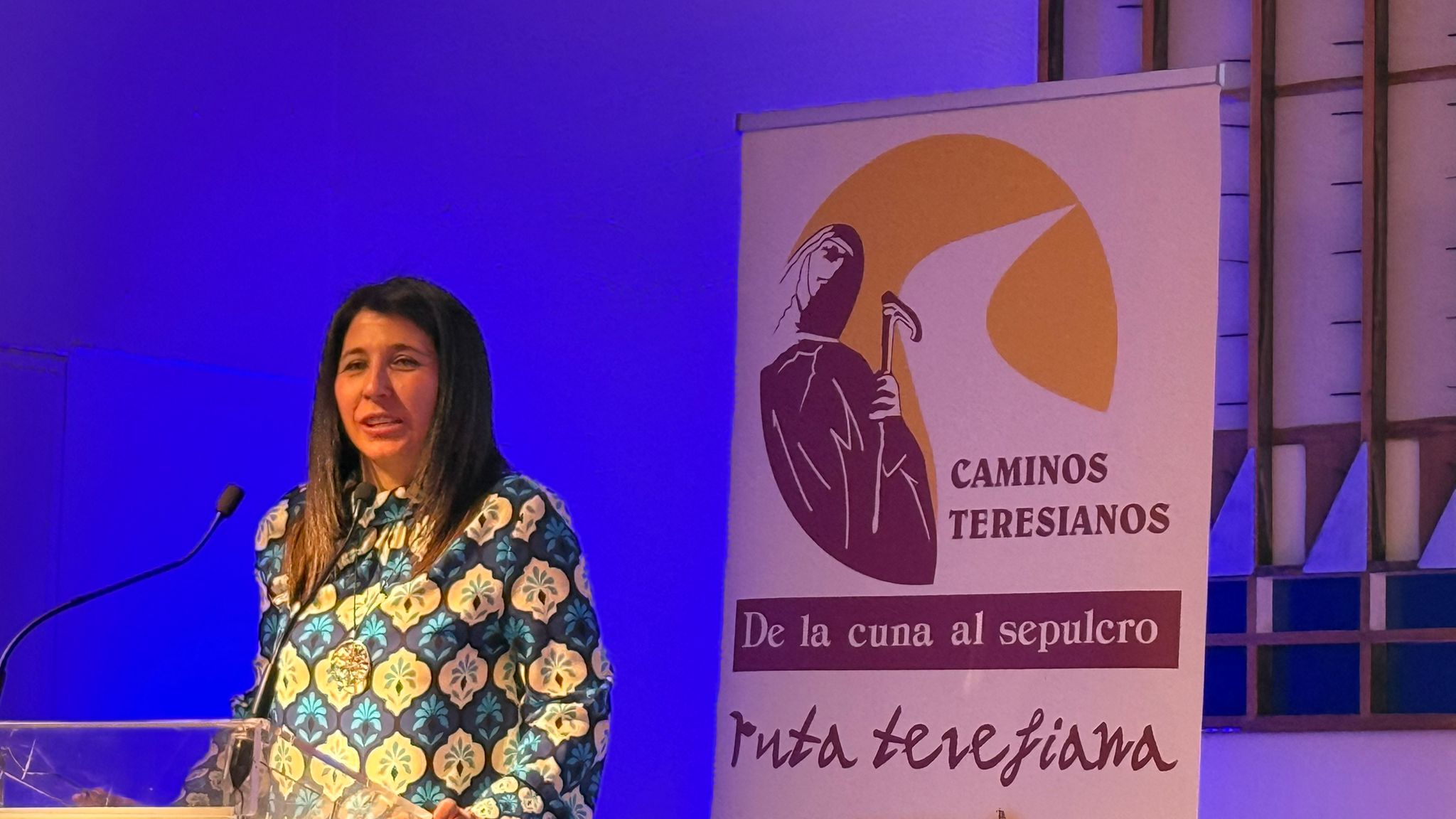 Dori Vicente, presidenta de l’associació ‘De la Cuna al Sepulcro’. Ruta de santa Teresa», ha començat la seva intervenció recordant que «portem més de deu anys treballant en un projecte en el qual els nostres pobles no estaven acostumats a veure pelegrins, treballant en una ruta turística religiosa a la qual els pelegrins arriben atrets per la figura de santa Teresa i san Joan de la Creu» i ha senyalat, a més, l’auge de tots els camins religiosos a nivell nacional i internacional. Dori Vicente ha fet una crida a la col·laboració dels empresaris del territori i a la unificació de recursos i ha assenyalat com a reptes d’aquest turisme religiós «la preservació i valorització del patrimoni religiós per al seu ús turístic, el desenvolupament sostenible considerant els impactes ambientals i socials i la promoció eficaç en mercats nacionals i internacionals».