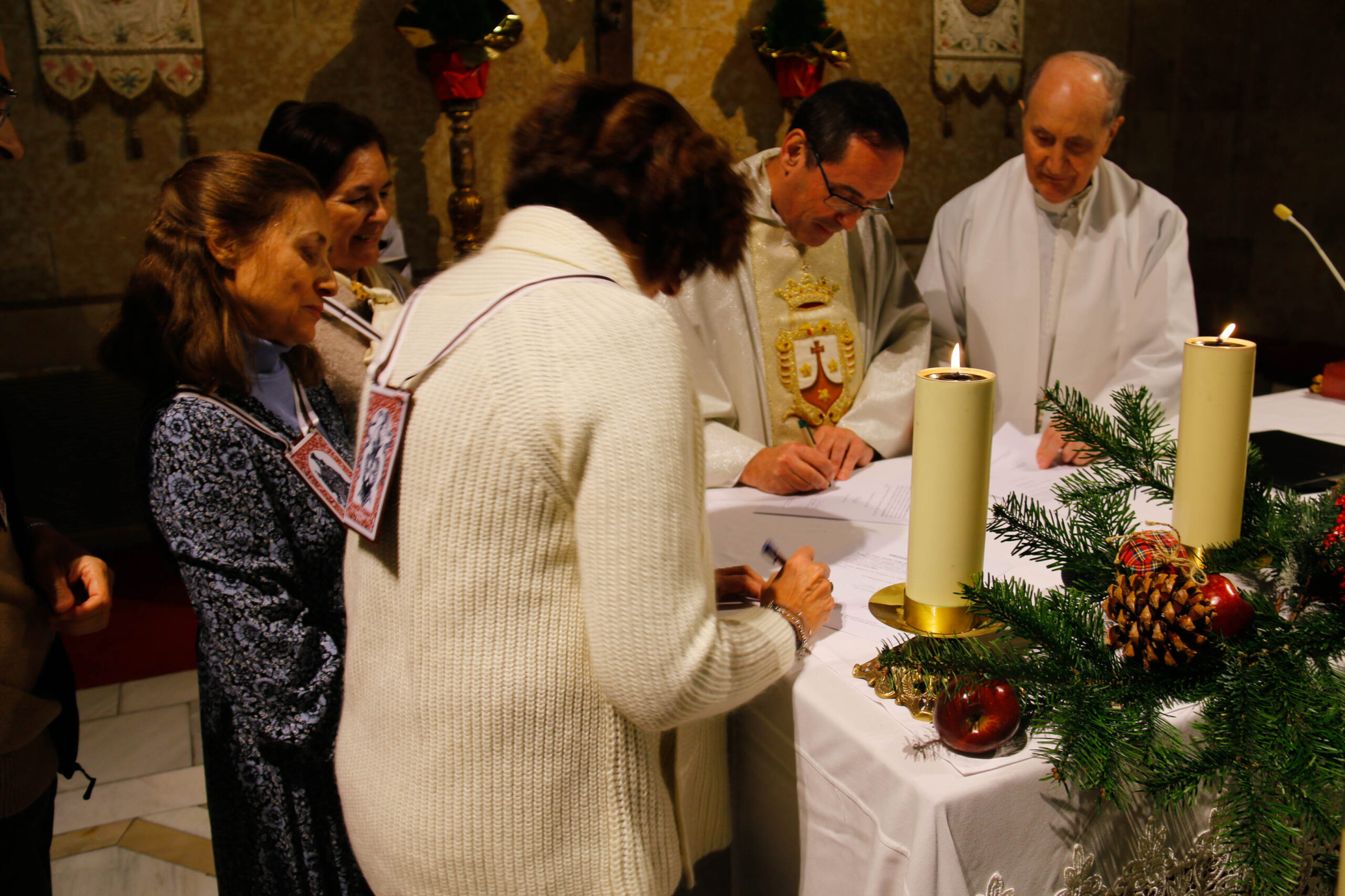 En la seva vibrant i esperada homilia, el P. Miguel va recordar que en el nostre fang i pobresa Déu s’ha encarnat per guanyar-se el nostre cor i fer grans coses amb la nostra fragilitat, i va convidar tots els presents, i a si mateix, a no ser simples espectadors de les promeses de Laura i María Jesús, sinó a dir amb elles: aquí estic Senyor, aquí em tens…