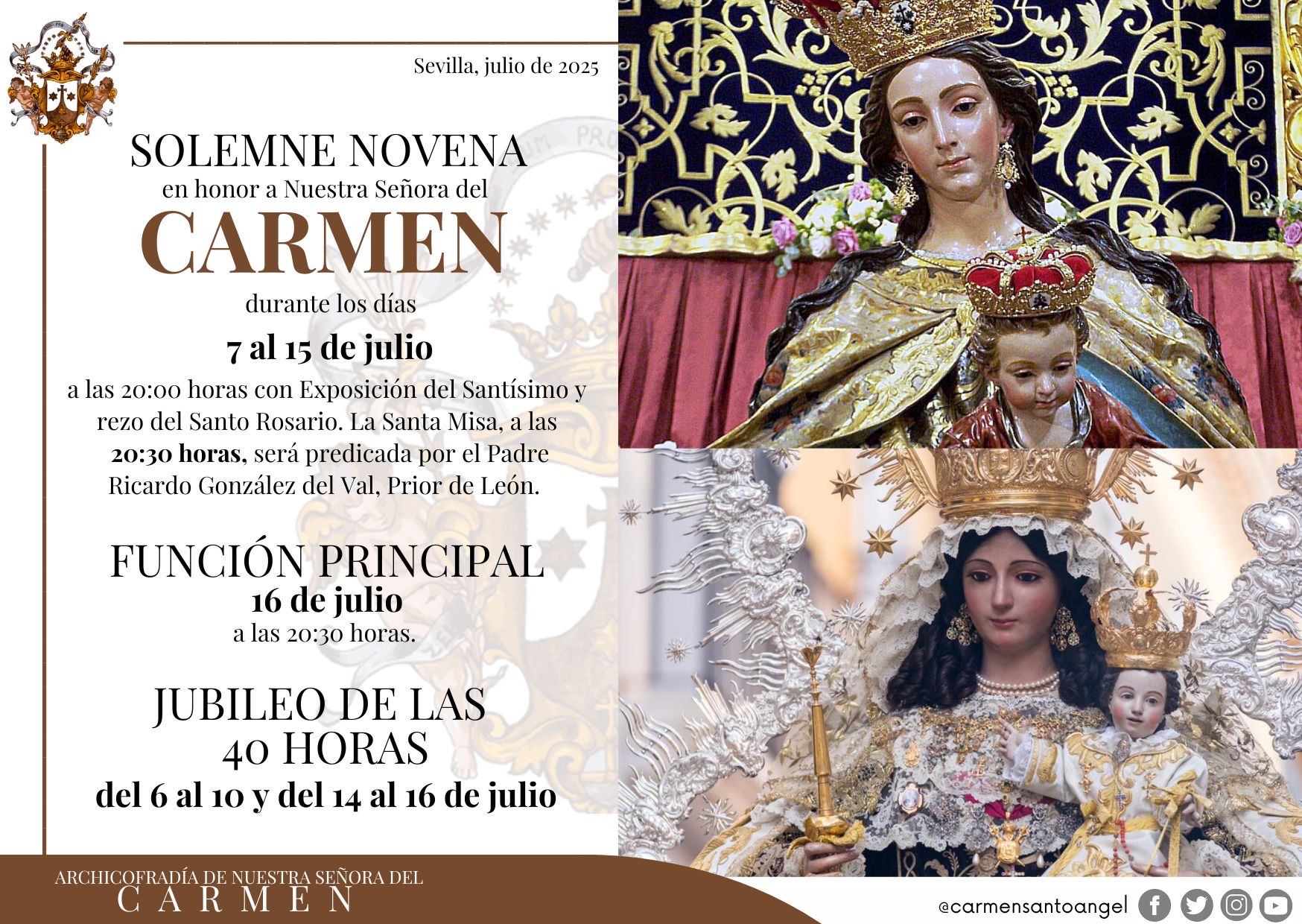 La comunitat dels pares Carmelites Descalços, juntament amb el Carmel Seglar i l’Arxiconfraria de Nostra Senyora del Carme, Miraculós Nen Jesús de Praga, Sant Joan de la Creu, Sant Josep i Santa Teresa de Jesús, celebraran del 7 al 16 de juliol de 2025 els solemnes cultes en honor a la Mare de Déu del Carme a l’Església de la Misericòrdia del Carme i Sant Ángel de la Guarda.