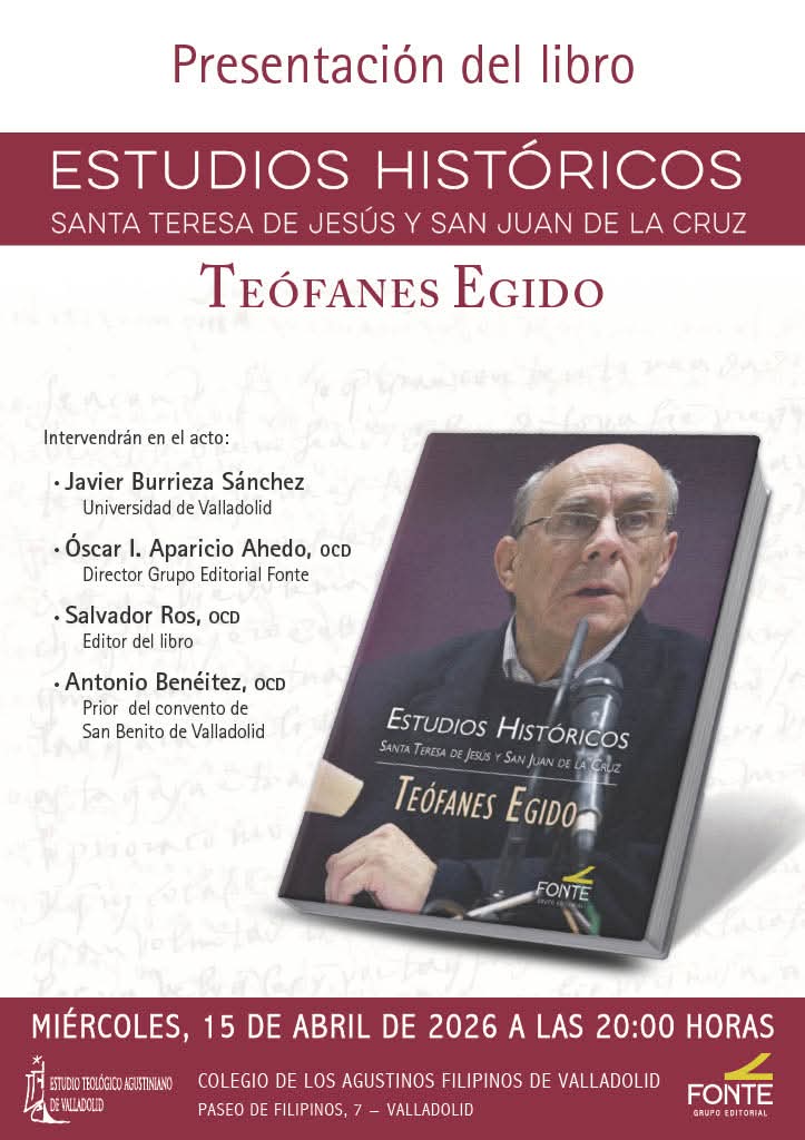 El Col·legi dels Agustins Filipins de Valladolid serà l’escenari, dimecres vinent 15 d’abril a les 20:00 hores, de la presentació del llibre “Estudios historicos. Santa Teresa de Jesús i San Juan de la Cruz”, del reconegut historiador Teófanes Egido.